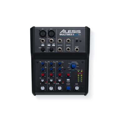 - 4 canaux mono et 4 canaux stéréo, chacun avec bouton de niveau, panoramique, mute, solo PFL