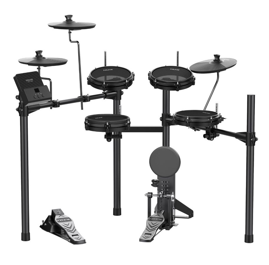 La DM-110 est une batterie numérique portable d’entrée de gamme hautes performances de la série NUX, conçue pour offrir des fonctionnalités exceptionnelles et une expérience de jeu naturelle. Dotée d’un cadre métallique élégant et de pads et cymbales compacts, elle est conçue pour les batteurs débutants comme pour les musiciens expérimentés à la recherche d’une solution polyvalente et peu encombrante.