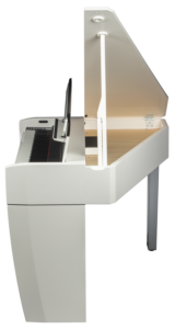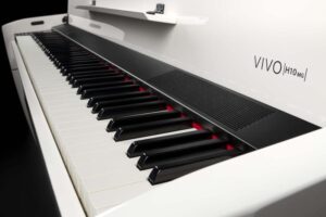 Le modèle VIVO « H10 Mini Grand Piano » est équipé d’un clavier avec touches hybrides et échappement. Il offre trois sons de piano PLATINUM et est muni pour la première fois d’une entrée pour micro et d’une table d’harmonie de piano à queue en bois d’épicéa provenant de la région italienne du Val di Fiemme.